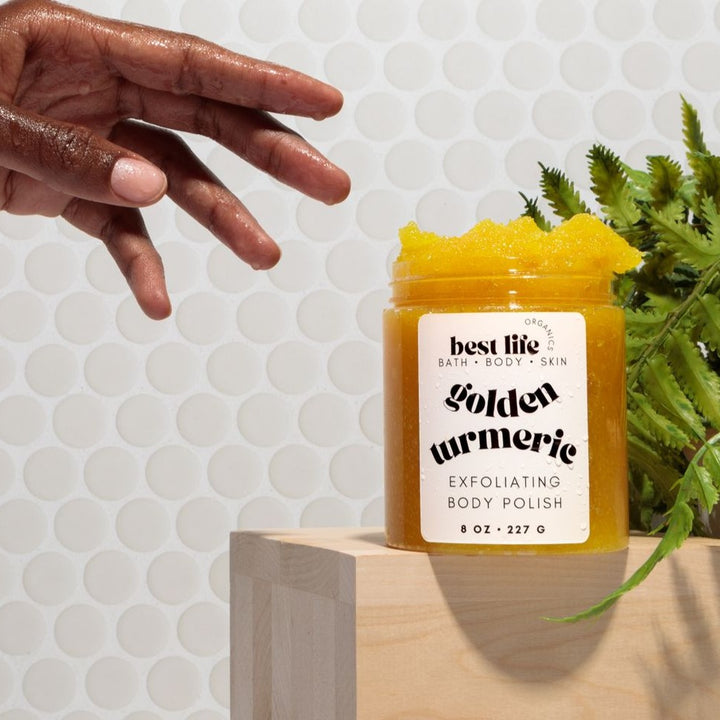 Experience bath time bliss with this all-over body scrub made from pure sugar crystals, organic turmeric root, and French rose clay. Use on rough and dry areas to exfoliate, provide intense moisture, and brighten darker areas of the skin.